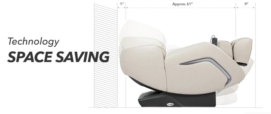 Along with the Zero Gravity recline, the Cosmo comes standard with space-saving technology, which allows you to place the chair within 2 inches from the wall, even while fully reclined. The chair will move forward while moving into Zero-Gravity reducing wasted space.