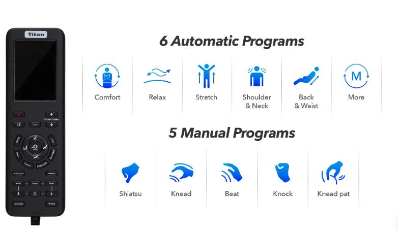 The Titan TP-Cosmo also comes standard with Titan’s latest massage rolling track, which massages from your neck, all the way down to your glutes and upper hamstrings. This is called an “SL” rolling track, and it works with the computer body scan at the beginning of every session to give every user a massage that fits their body.
