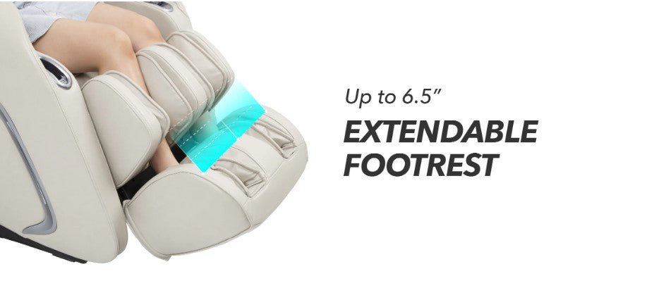 The Cosmo has an Automatic Extendable Footrest which can be extended up to 6.5 inches, allowing it to accommodate various heights. When initiating the massage, the leg-rest can be extended completely out and then retracted.